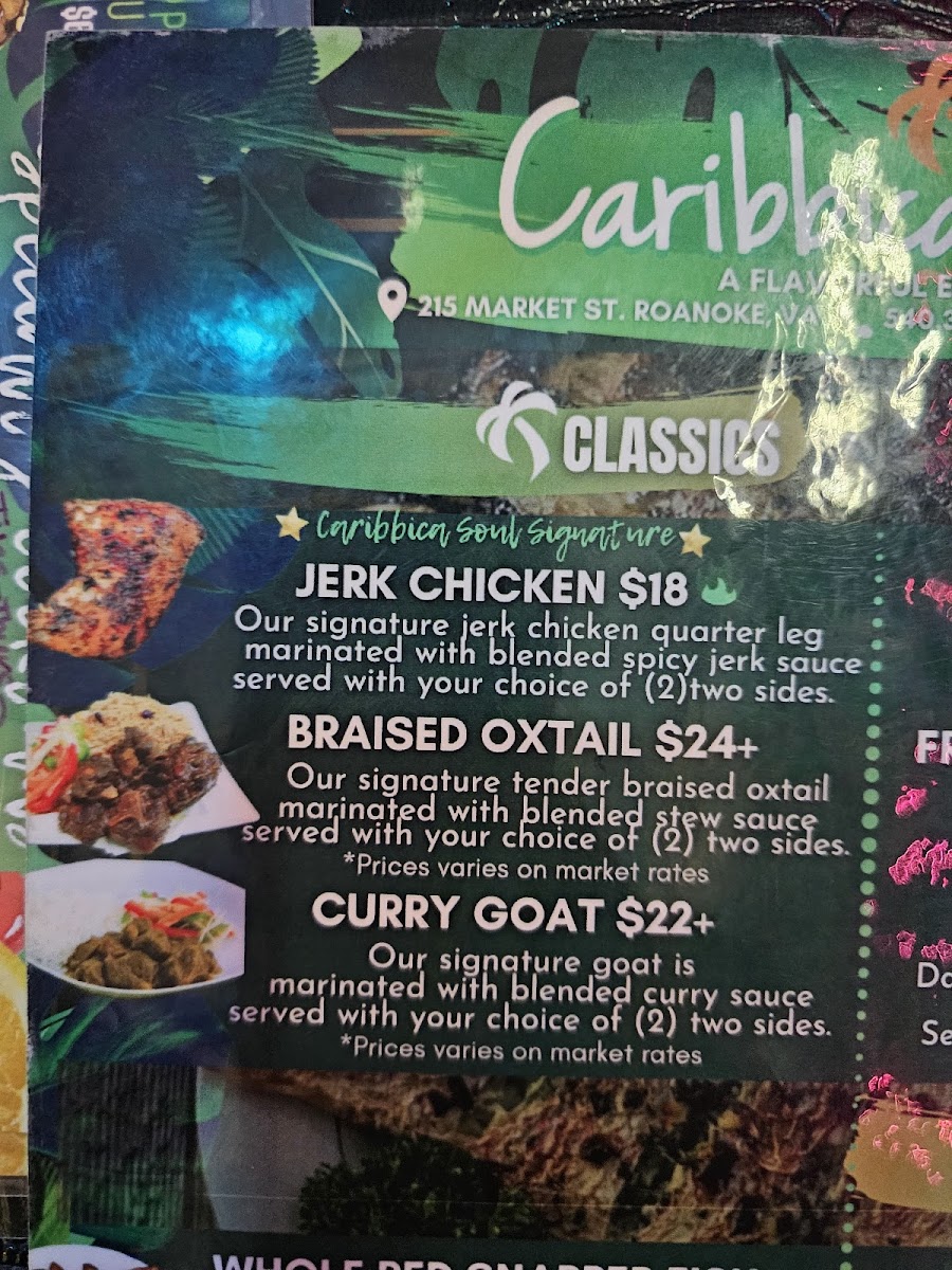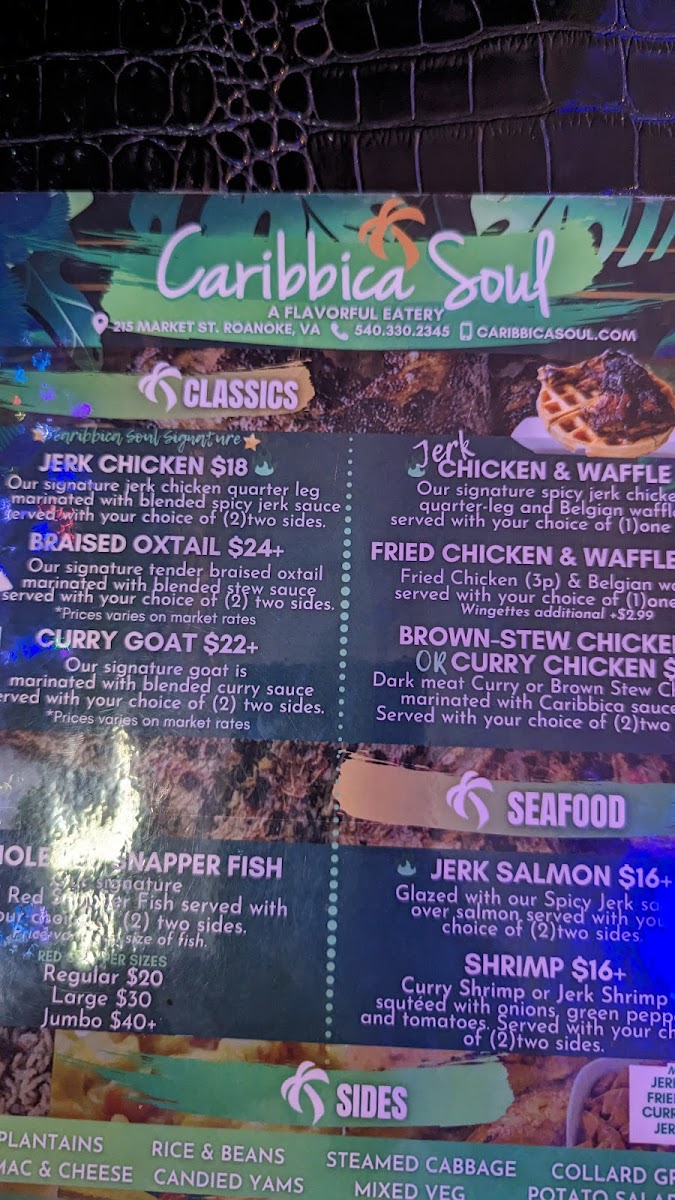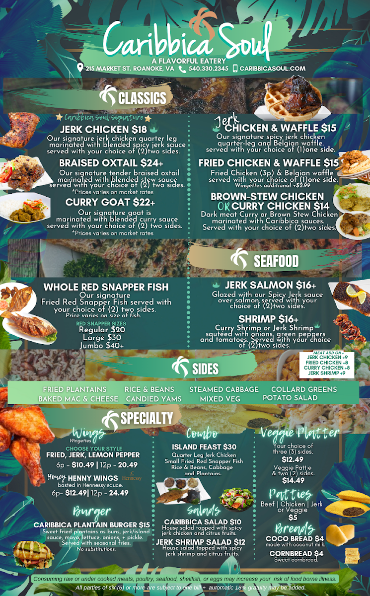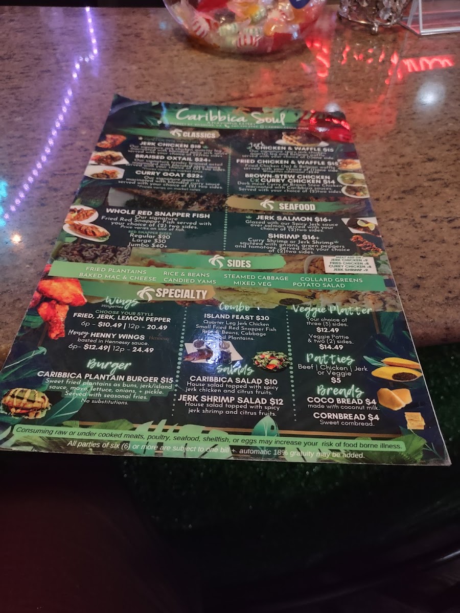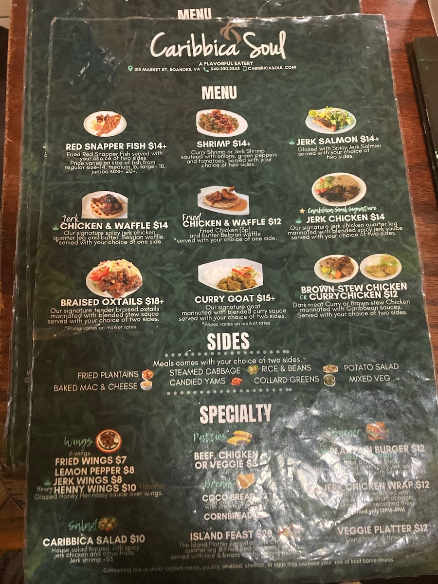 Jerk Shrimp- sautéed onions, tomatoes and peppers- with your choice of one side.